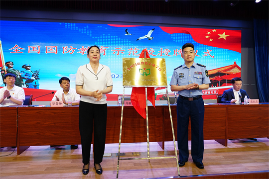 圖為周昆訓(xùn)(生前)參加舒蘭市第一高級(jí)中學(xué)全國國防教育示范校授牌儀式。吉林省軍區(qū)政治工作局供圖