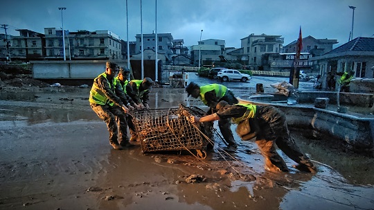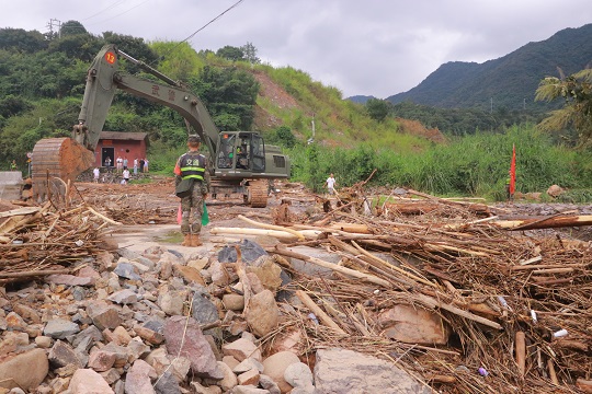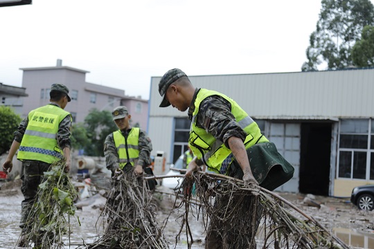 臺風(fēng)登陸后,福清市鏡洋鎮(zhèn)遭遇強(qiáng)降雨襲擊,發(fā)生洪澇災(zāi)害。接福清市人民政府函請,武警第二機(jī)動總隊(duì)某支隊(duì)于9月5日14時40分出動63名官兵,攜帶15臺(套)專業(yè)救援機(jī)械趕赴受災(zāi)一線,協(xié)助地方政府進(jìn)行道路清障和供電搶修任務(wù)。