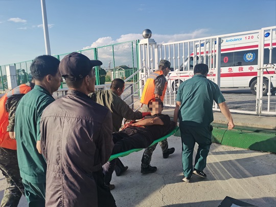 9月1日15時(shí)10分,丹東海警局接報(bào)警稱,遼丹漁25489號(hào)船一名船員在作業(yè)時(shí)因操作不慎右臂被機(jī)器卷入,造成粉碎性骨折,處于大量失血狀態(tài),但漁船靠港需4個(gè)多小時(shí),急需海警救援。接警后,丹東海警局立即派遣附近海域巡邏的執(zhí)法快艇全速救助。15時(shí)50分許,受傷漁民被轉(zhuǎn)移至執(zhí)法快艇,執(zhí)法員一邊安撫傷員情緒,一邊聯(lián)系救援力量前往碼頭準(zhǔn)備接應(yīng)。16時(shí)30分,執(zhí)法快艇抵達(dá)附近港口后,受傷船員被送上救護(hù)車。從接警到成功將受傷漁民送至救護(hù)車,丹東海警局僅用時(shí)約1小時(shí)20分,為受傷漁民爭(zhēng)取了寶貴的救援時(shí)間。目前,該船員因救助及時(shí),已無生命危險(xiǎn)。