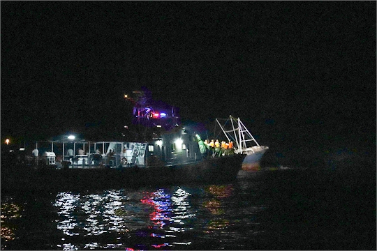 接警后,廣東海警局迅速指派廣東陽(yáng)江海警局執(zhí)法艇往事發(fā)海域展開救援。23時(shí)許,海警執(zhí)法艇到達(dá)事發(fā)海域,由于該海域附近暗礁多且海況復(fù)雜,海警執(zhí)法艇通過(guò)AIS系統(tǒng)對(duì)海面進(jìn)行搜索后,最終發(fā)現(xiàn)遇險(xiǎn)船只。21日凌晨4時(shí)30分許,海警執(zhí)法艇將26名遇險(xiǎn)漁民轉(zhuǎn)移至陽(yáng)東工作站海警碼頭。