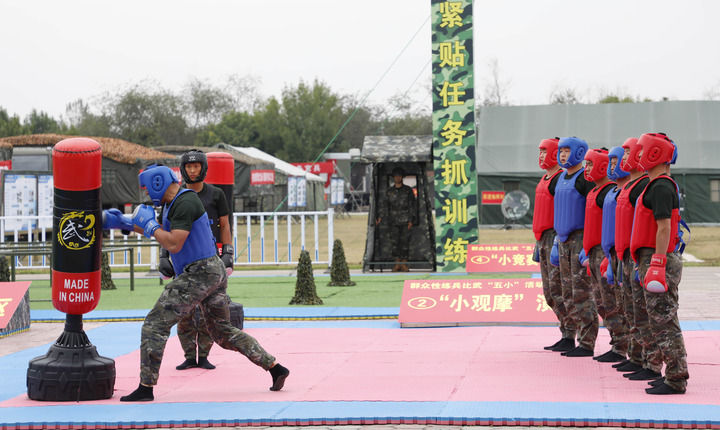 圖為9月25日,武警部隊在天津組織新時代按綱抓建基層試行示范,武警第一機動總隊某支隊官兵進行群眾性練兵比武“五小”活動演示。劉歡 攝