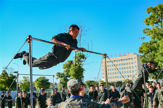 投擲場上,參賽隊員將體能與技能完美結(jié)合,演繹著不一樣的“速度與激情”。30X2蛇形跑賽場上,他們重心壓低,一路漂移。五公里武裝越野、運送彈藥箱、防暴彈投擲……這些火藥味兒十足的項目營造出精武強能的氛圍,讓參賽隊員在賽場上淬煉勇于爭先的品行意志,錘煉過硬戰(zhàn)斗本領(lǐng)。他們把體育精神融入戰(zhàn)斗精神,在賽場上揮灑汗水,在比拼中錘煉血性,讓青春活力和激情熱血在賽場上同頻共振。