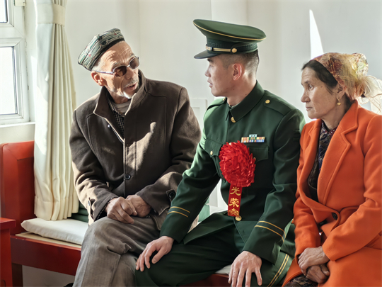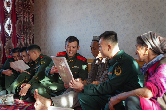 圖為中隊官兵來到老鄰居卡德爾家,回顧軍民魚水情。張毅 攝