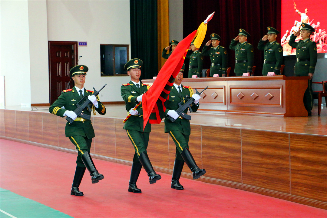 圖為迎武警部隊(duì)旗。