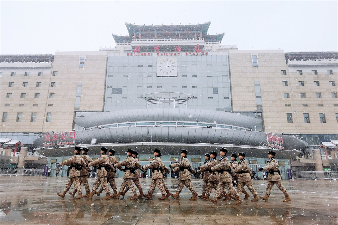 12月13日,北京市迎來強(qiáng)降雪和寒潮天氣,部分地區(qū)出現(xiàn)大到暴雪,對交通出行造成不同程度影響。武警北京總隊執(zhí)勤第六支隊加強(qiáng)與北京西站、豐臺站聯(lián)防聯(lián)動,及時調(diào)整勤務(wù)部署,確保旅客安全順利出行。