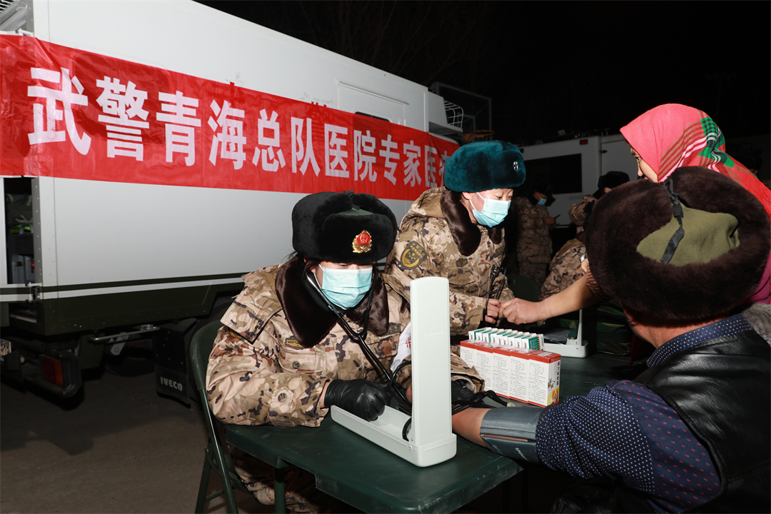圖為武警青??傟?duì)醫(yī)院軍醫(yī)為受災(zāi)群眾提供醫(yī)療義診服務(wù)。朱曉坷 攝