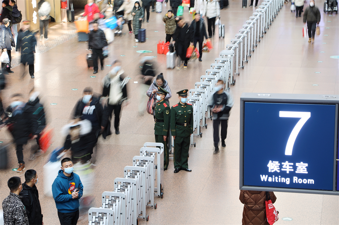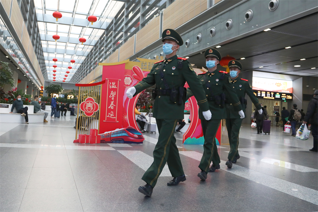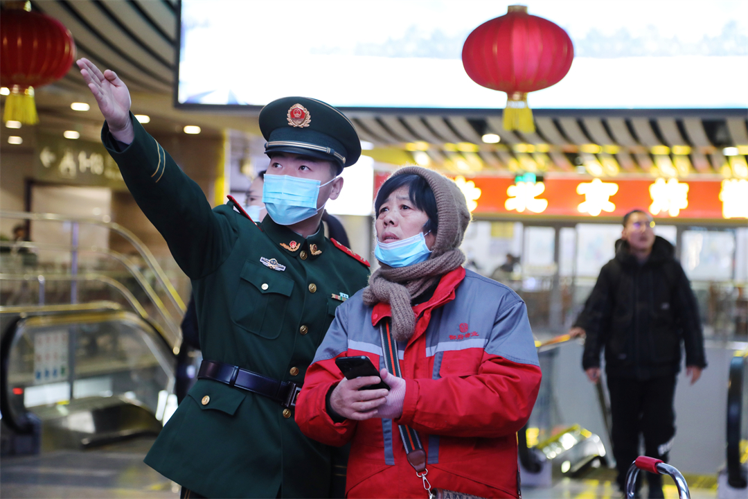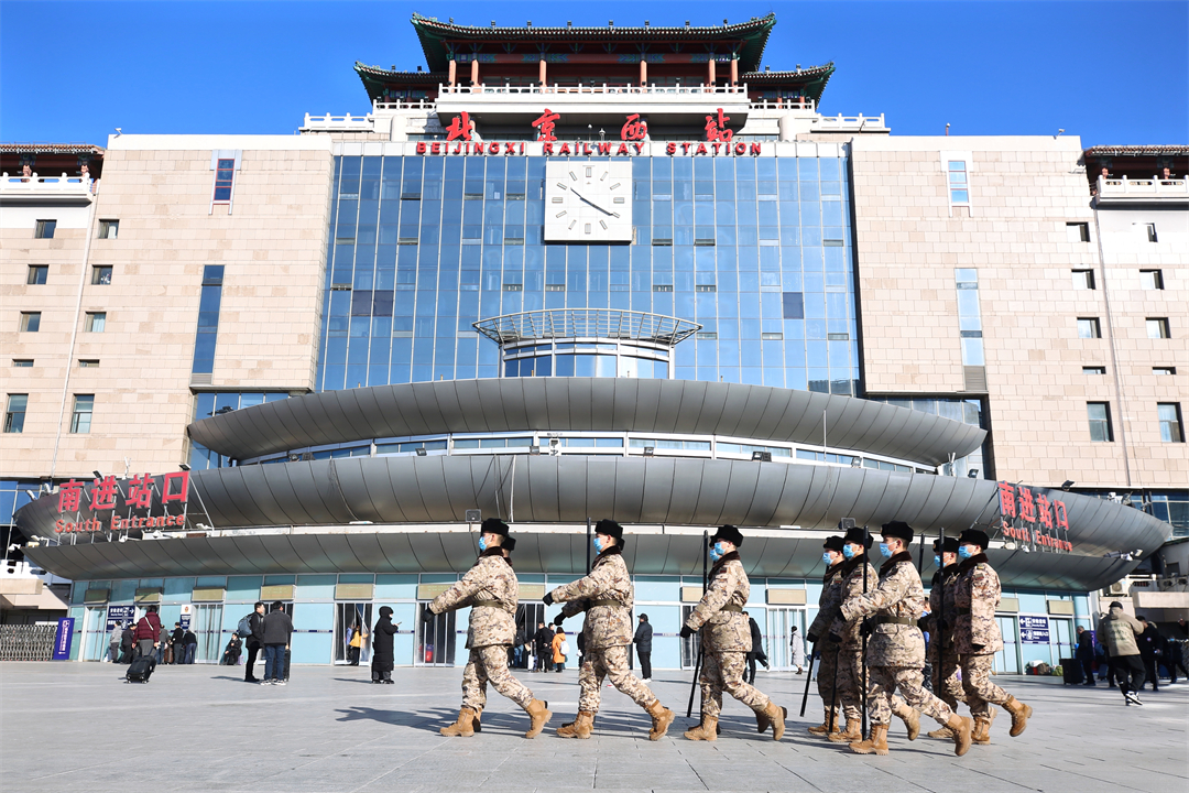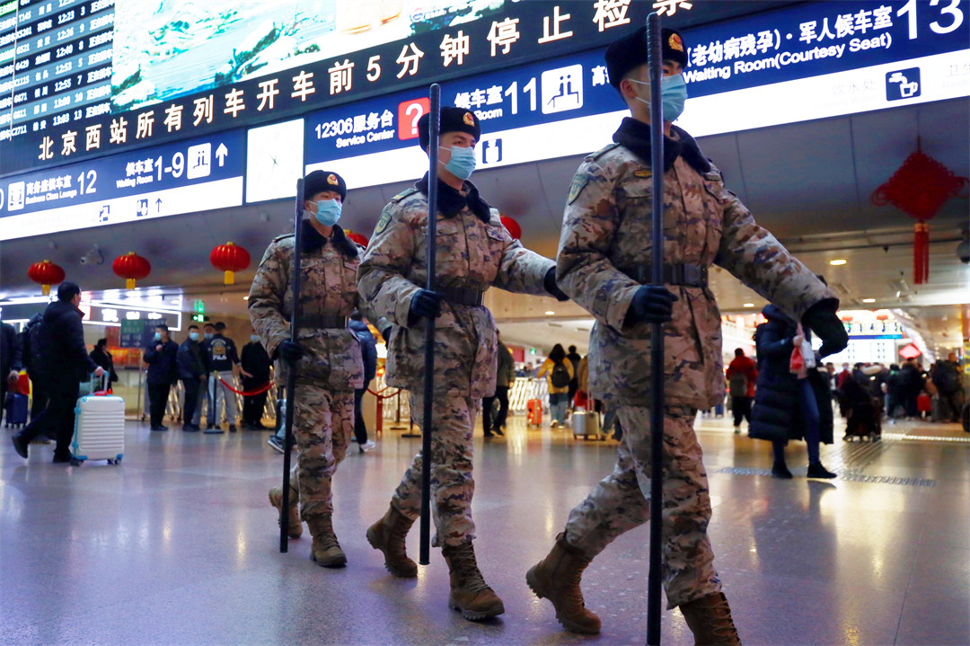1月26日,全國(guó)春運(yùn)正式拉開帷幕。擔(dān)負(fù)北京西站守衛(wèi)任務(wù)和北京豐臺(tái)站定點(diǎn)警戒任務(wù)的武警北京總隊(duì)執(zhí)勤第六支隊(duì)官兵堅(jiān)守執(zhí)勤戰(zhàn)位,熱心為群眾提供幫助,以實(shí)際行動(dòng)溫暖守護(hù)旅客歸鄉(xiāng)路。