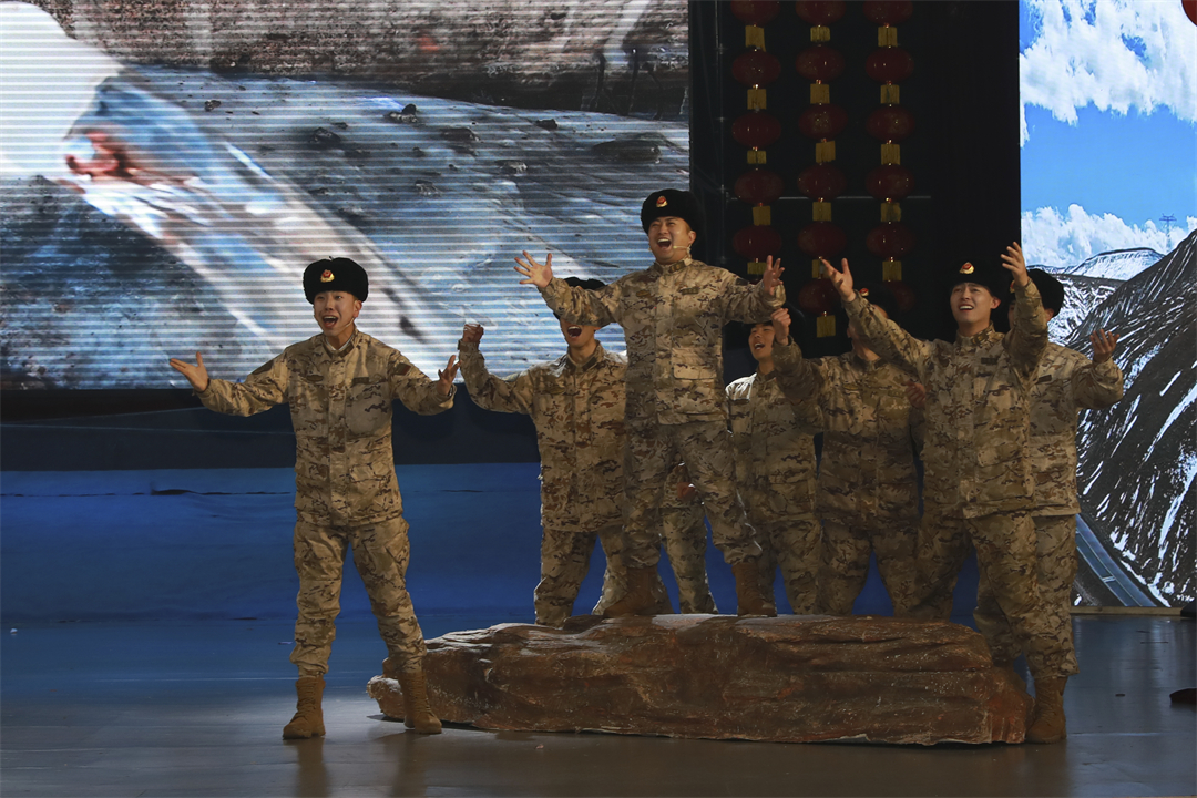 情景微劇《云端不“凍”泉》受到官兵一致好評(píng)。該劇以總隊(duì)為駐守在高寒高海拔地區(qū)官兵成功打出兩口水井的事例為劇本,生動(dòng)講述了在總隊(duì)黨委關(guān)心關(guān)懷下,各級(jí)持續(xù)攻堅(jiān)、排除萬難,下大力解決艱苦偏遠(yuǎn)地區(qū)官兵生活困難等問題。微劇中,當(dāng)海拔4868米、武警部隊(duì)海拔最高的昆侖山隧道2號(hào)哨所水井出水時(shí),官兵們載歌載舞、舉杯暢飲的美好場(chǎng)面振奮人心,全場(chǎng)爆發(fā)出熱烈掌聲。