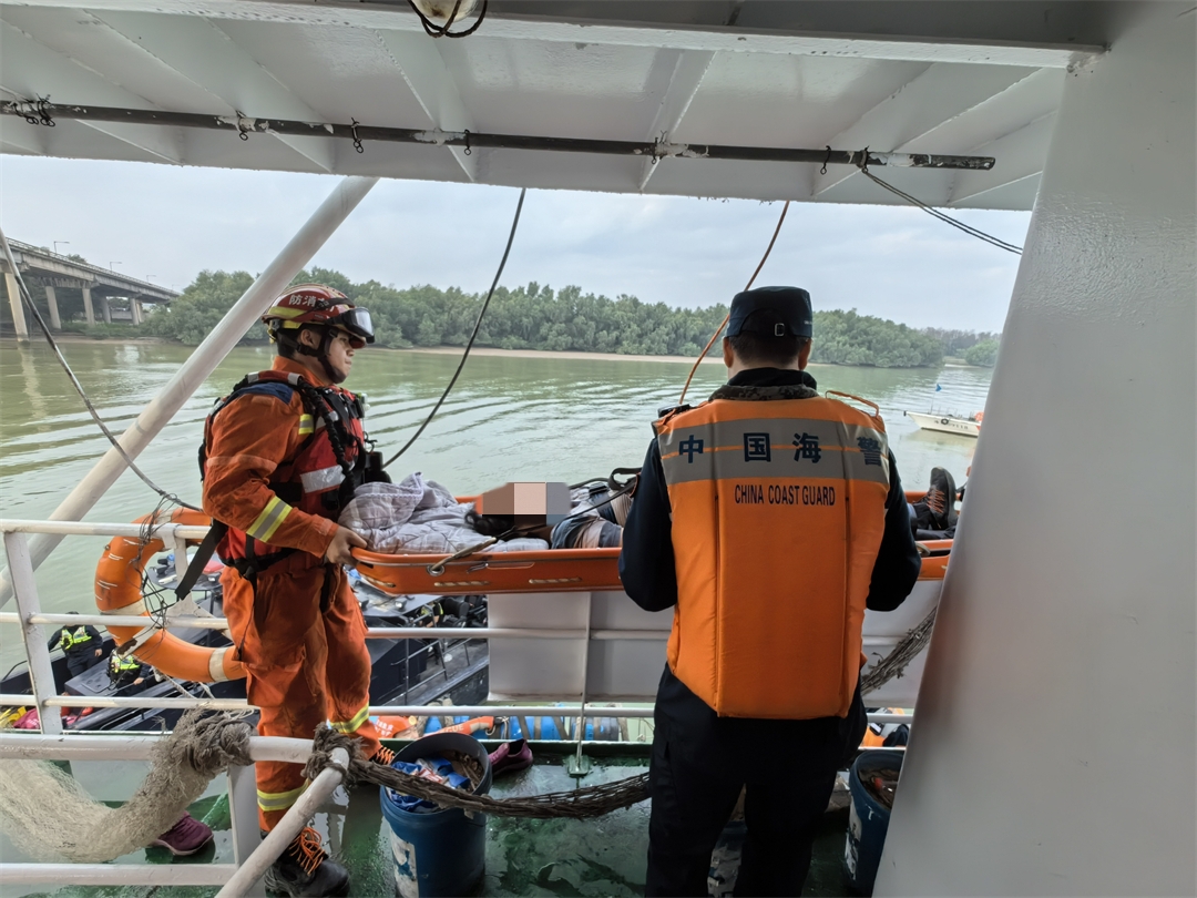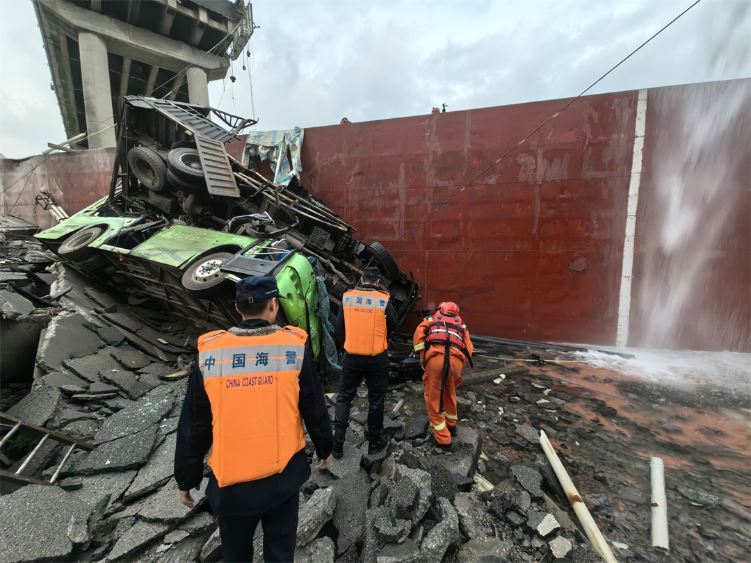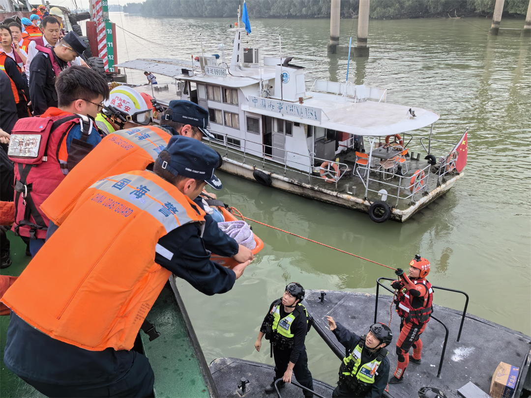2月22日6時許,廣州海警局接報警,南沙瀝心沙大橋被撞,橋體斷裂,橋上有車輛落水,情況危急請求救援。接警后,廣州海警局立即啟動海上應(yīng)急救援預(yù)案,指派21523、21141等執(zhí)法艇第一時間到達(dá)事發(fā)海域,聯(lián)合消防、公安、海事等單位開展緊急救援。