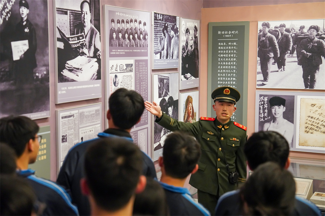 圖為武警長沙支隊“紅肩章”講解員在雷鋒紀(jì)念館進(jìn)行義務(wù)講解。