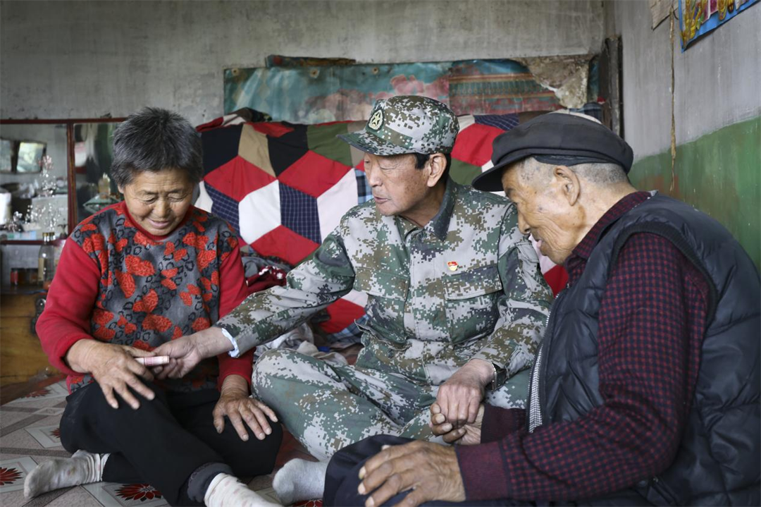 圖為逢年過(guò)節(jié),張連印看望村里的貧困戶。