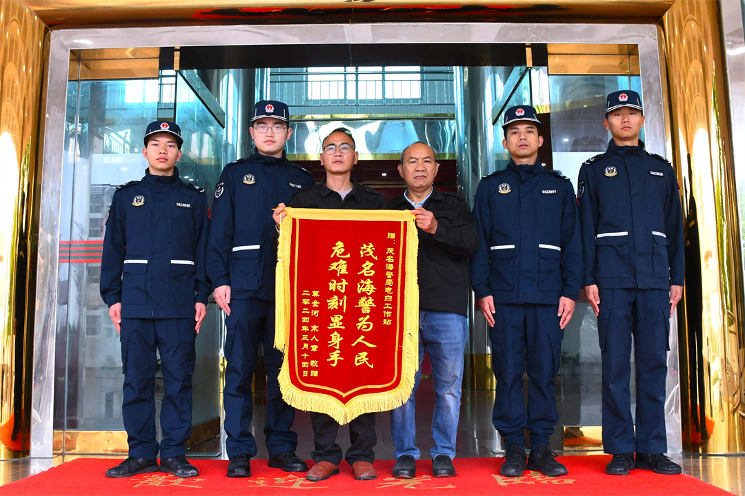 3月14日下午,水東灣海洋公園兩名工作人員攜帶一面印有“茂名海警為人民 危難時(shí)刻顯身手”的錦旗,來到廣東茂名海警局電白工作站,專程向?qū)ζ鋵?shí)施救援的海警執(zhí)法員表示感謝。
