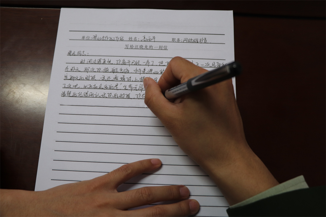 汪曉龍同志逝世已經(jīng)1周年了,在這1年里,廣東海警局執(zhí)法員們有很多心里話想跟曉龍說,在該局各級營區(qū)的每個角落,都有給汪曉龍寫信的身影。他們通過寫信寄托對英雄的思念,回顧一年來自身的成長進(jìn)步和不足之處,勉勵和鞭策自己向英雄看齊。艦艇的甲板上,執(zhí)法員們席地而坐,圍繞“學(xué)習(xí)英雄精神 爭做新時代守海人”展開討論,結(jié)合實際談感受,立足崗位講做法,讓汪曉龍精神切實融入到每個工作崗位。