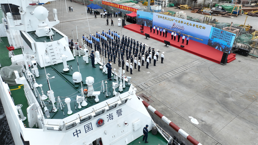 啟動(dòng)儀式現(xiàn)場(chǎng),隨著廣東海警局局長一聲令下,偵緝無人機(jī)方陣迅速升空,艦艇編隊(duì)汽笛齊鳴,紛紛駛向任務(wù)海域。在此次專項(xiàng)打擊行動(dòng)中,該局堅(jiān)持露頭就打、全面圍剿,有針對(duì)性地加強(qiáng)重點(diǎn)海域、重點(diǎn)時(shí)段巡邏管控,常態(tài)化保持艦艇位周邊海域值守,堅(jiān)持“7×24小時(shí)”全時(shí)段響應(yīng),最大限度顯性用警、屯兵一線;積極聯(lián)合公安、海關(guān)、海洋綜合執(zhí)法、海事、煙草專賣局等部門,通過科學(xué)調(diào)配警力,優(yōu)化勤務(wù)部署,采取“海上查、岸上堵”“網(wǎng)格化巡邏”等多種方式,對(duì)可疑船舶進(jìn)行嚴(yán)密監(jiān)控和排查,不斷提高登檢率、查緝率、成案率,確保打擊取得成效。