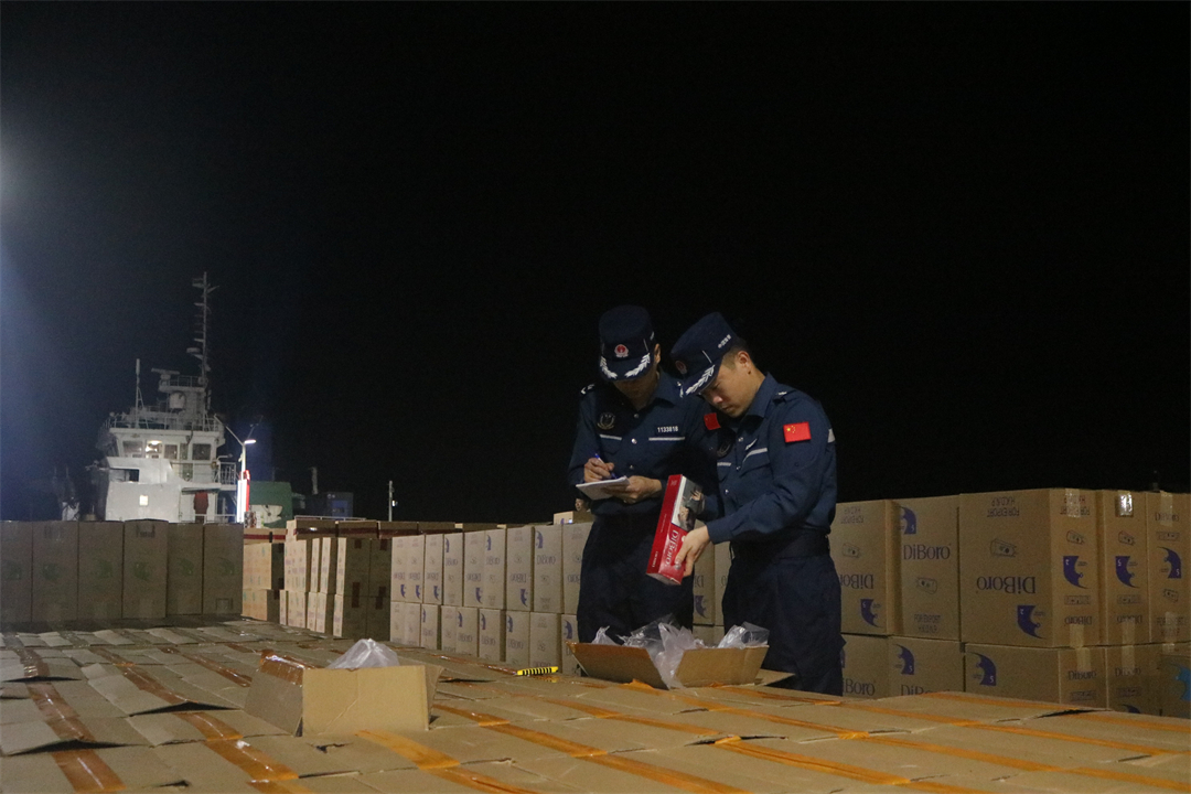 圖為煙草部門查驗(yàn)走私香煙。