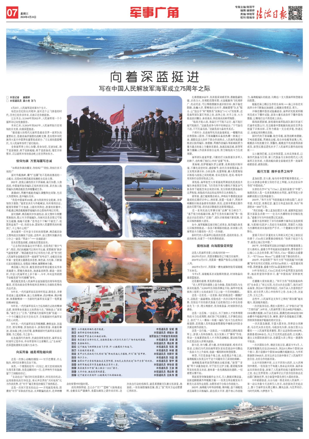 全體海軍將士初心如磐、使命如炬、征途如虹,敢于直面強敵、敢于創(chuàng)新超越、敢于直前備戰(zhàn),錨定目標要求,正以前所未有的姿態(tài)屹立在世界的東方。