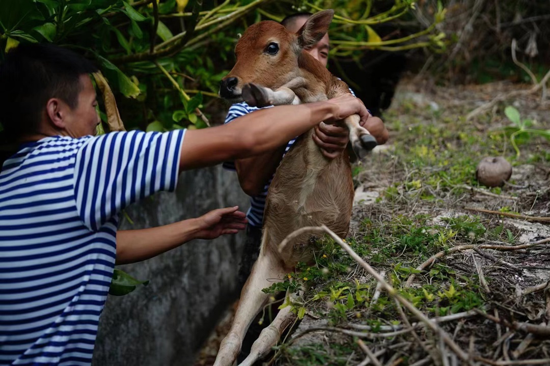 圖為東島官兵救治野牛。周思鴻 攝