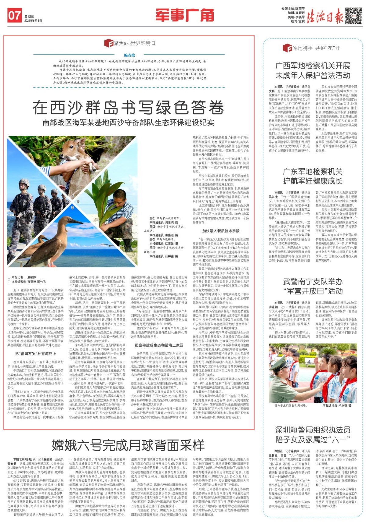近年來,西沙守備部隊官兵積極投身生態(tài)環(huán)境保護(hù)事業(yè),用心用情用力守護(hù)西沙碧海藍(lán)天,以點滴行動踐行“愛國愛島 樂守天涯”的西沙精神。生態(tài)環(huán)境的改善,不僅大幅提升官兵生活質(zhì)量,而且扎實促進(jìn)部隊?wèi)?zhàn)斗力生成。