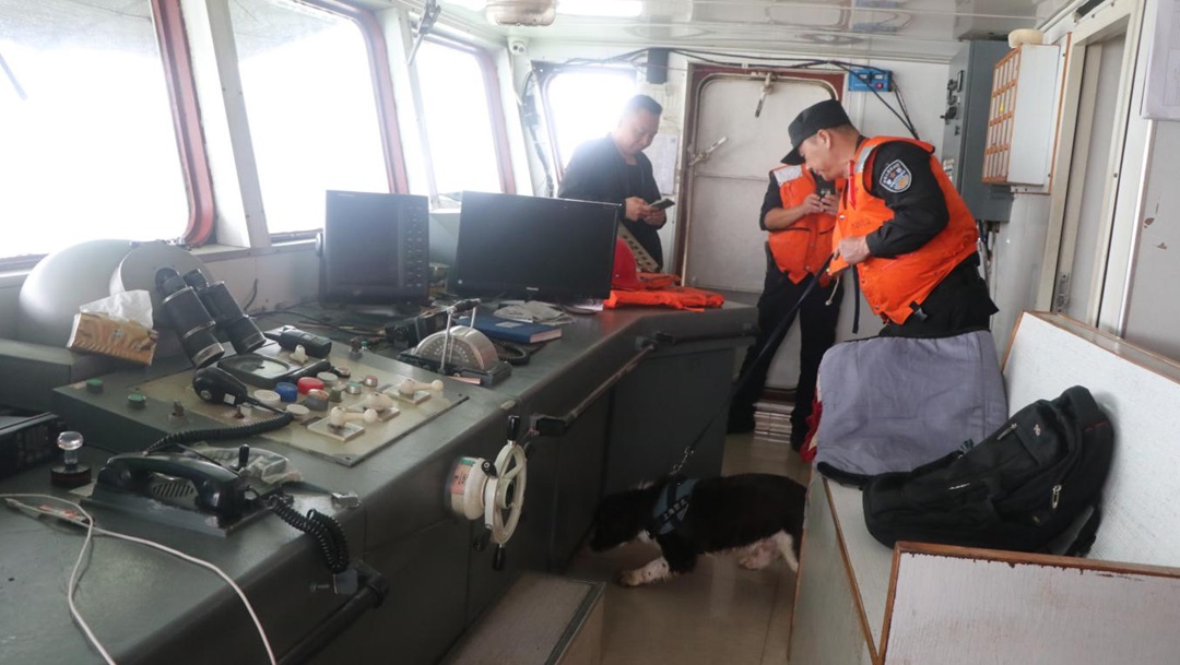 隨著“6·26”國(guó)際禁毒日的到來(lái),6月19日,上海市公安局刑偵總隊(duì)緝毒處民警攜帶兩條緝毒犬與上海海警局執(zhí)法員一同,登上正在執(zhí)行巡航任務(wù)的海警浮山艦,對(duì)長(zhǎng)江口過(guò)往船只進(jìn)行隨機(jī)登臨檢查。