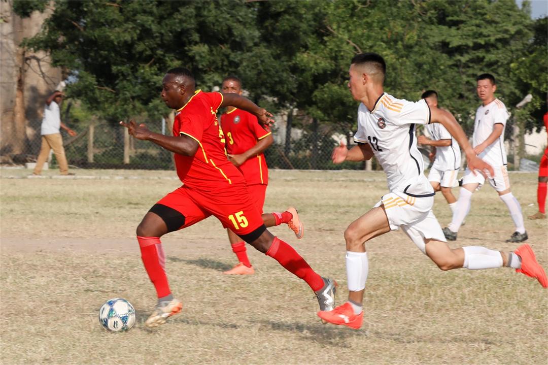 16時(shí),隨著一聲哨響比賽正式開始。兩國球員在球場上你追我趕,奮力拼搏,流暢的傳球、默契的配合、犀利的進(jìn)攻、精彩的破門,一個(gè)個(gè)精彩畫面不斷上演。
