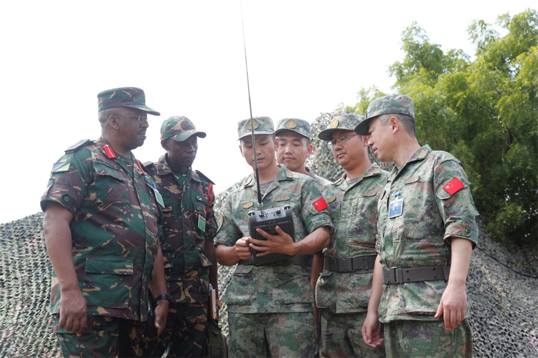 圖為中坦軍官兵進(jìn)行監(jiān)測技術(shù)交流。