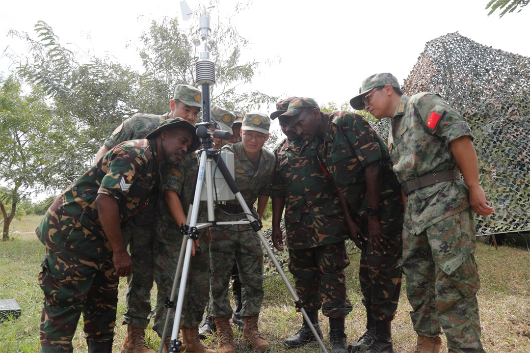圖為中坦軍官兵進(jìn)行氣象觀測技術(shù)交流。