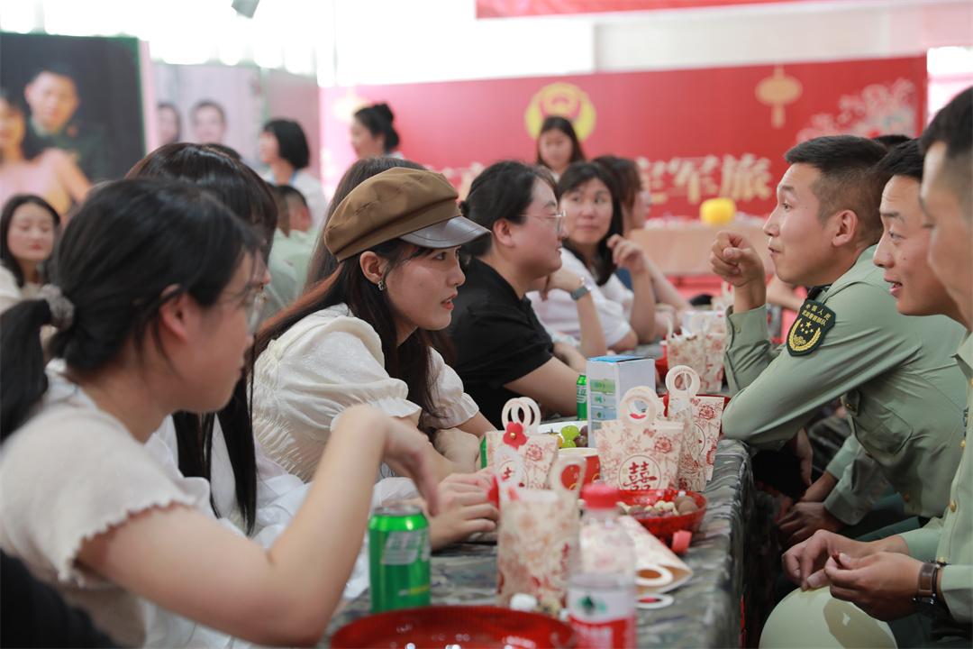 正式活動在精彩的才藝展示中拉開帷幕,舞蹈、歌曲、互動游戲輪番上演,參加活動的兵哥哥和小姐姐們快速提升彼此的熟悉度和默契感,在互動中加深了解,在溝通交流中增進友誼。很多人主動出擊,相互邀請約會交流,邁出幸福第一步。在最后真情告白環(huán)節(jié),一名收獲愛情的小姐姐緊緊牽著兵哥哥的手,臉上洋溢著幸福:“你守護著祖國,請讓我守護著你!”