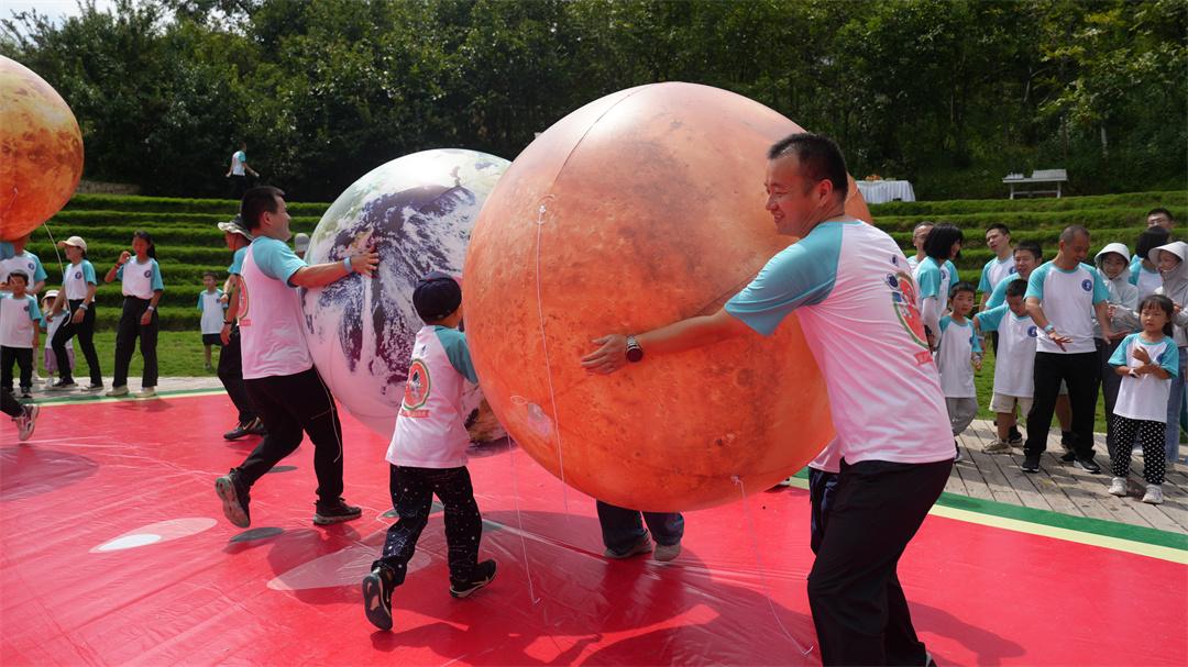 “加油!加油!加油!”在文昌銅鼓嶺測控點(diǎn),趣味套圈游戲?qū)⒂H子活動(dòng)引向高潮。瞄準(zhǔn)、蓄力、拋出……在與爸爸媽媽的協(xié)作和挑戰(zhàn)中,一個(gè)個(gè)航天娃沉浸在歡樂的海洋里。隨著拋出的圓圈套中心儀獎(jiǎng)品,小朋友們喜笑顏開,帶著戰(zhàn)利品凱旋。