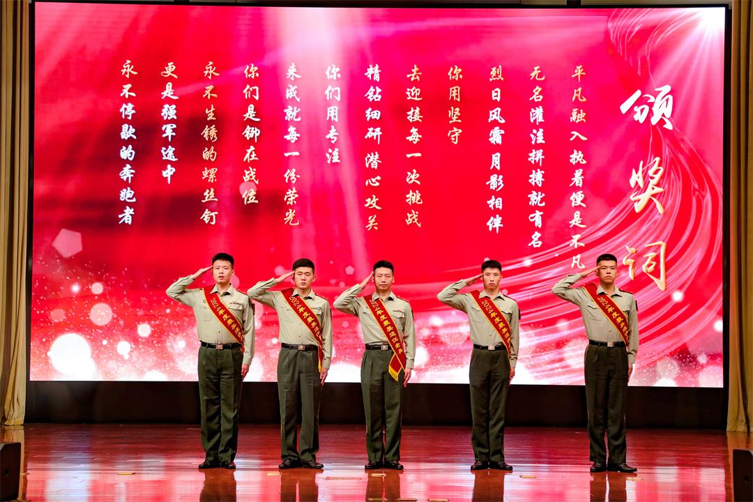 頒獎(jiǎng)典禮分為流血流汗的“刀尖子”、默默無聞的“老耕?!?、身兼數(shù)職的“戰(zhàn)斗員”、小崗位上的“螺絲釘”、以心換心的“親兄弟”、忠孝兩全的“男子漢”六個(gè)篇章,通過官兵講述和文藝匯演穿插的方式進(jìn)行。既有不怕流汗、不怕流血的軍事尖子、特戰(zhàn)骨干,又有為人老實(shí)、工作踏實(shí)的老黃牛;有衛(wèi)生員、炊事員、文書等既是戰(zhàn)斗員又是服務(wù)員的生動(dòng)事跡,又有副班長(zhǎng)、團(tuán)支部副書記、風(fēng)氣監(jiān)督員等小崗位上踐行“崗位雖小擔(dān)千鈞”的優(yōu)秀老兵;既有帶兵帶心、帶兵育人的軍中之母,又有在部隊(duì)盡忠、對(duì)家庭盡孝的優(yōu)秀老兵。