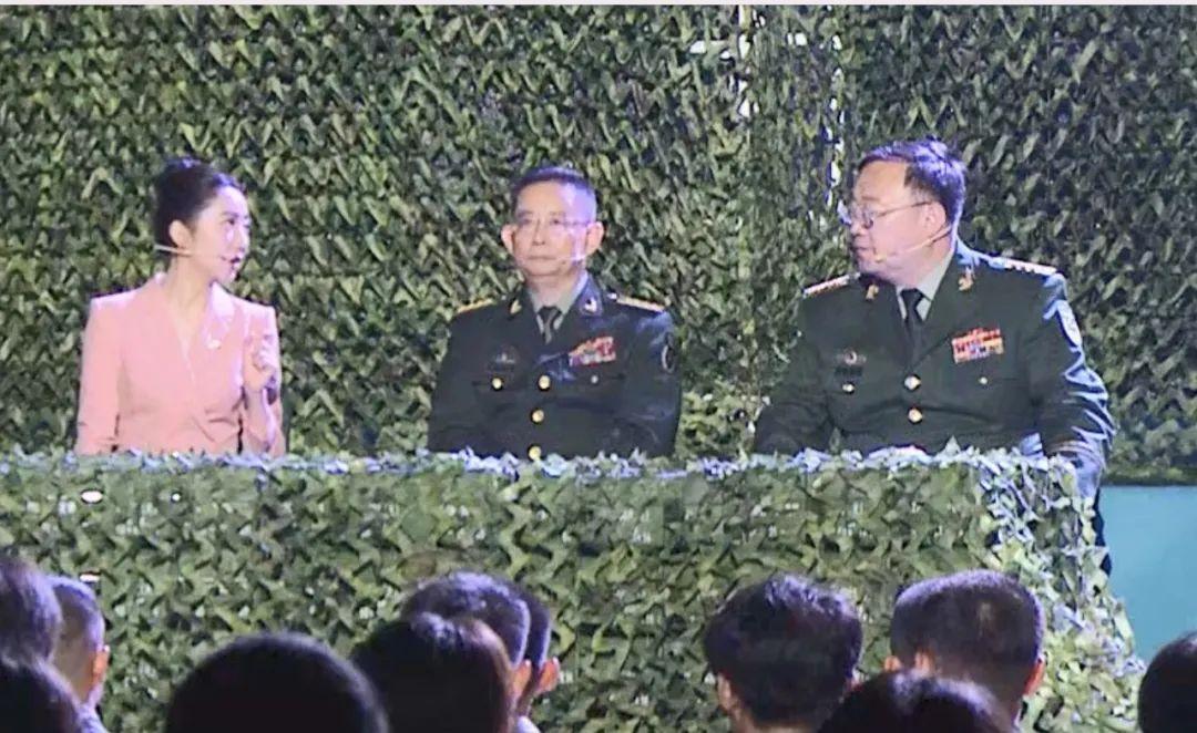總臺主持人周瑜以及兩位嘉賓,解放軍文化藝術中心文藝輕騎隊編劇李文緒,武警宣傳文化中心副主任、《紅肩章》總編劇章曉宇,與戰(zhàn)友們邊觀看邊討論。