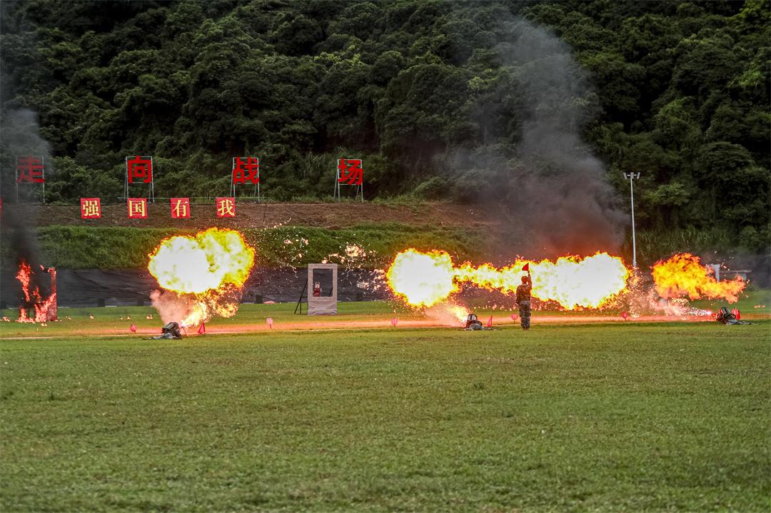 圖為官兵進行噴火課目演示。