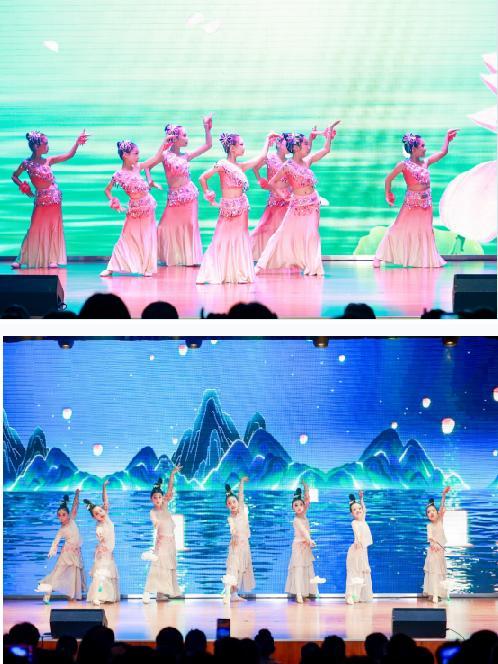 室內(nèi)舞臺(tái)上,精彩節(jié)目輪番上演,讓人目不暇接。詩(shī)歌朗誦《中國(guó)話》鏗鏘有力,京劇《貴妃醉酒》華麗細(xì)膩,女生表演唱《阿妹的苗寨》歡快動(dòng)人……每一個(gè)節(jié)目都是孩子們用心血和熱情澆灌的碩果,他們用自己的方式向祖國(guó)母親獻(xiàn)上最真摯的祝福。