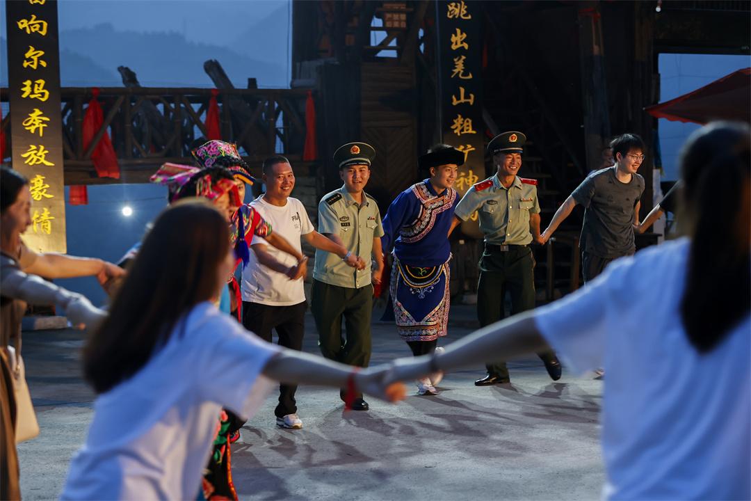 圖為武警北川中隊官兵同村民共同開展文藝活動,融洽軍民關(guān)系,促進(jìn)軍地共同發(fā)展,形成獨具特色富有成效的共建模式。