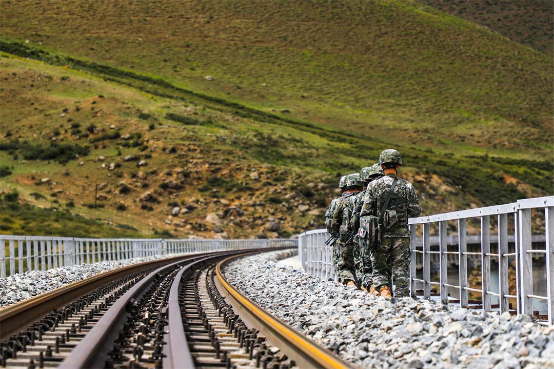 青藏鐵路是西藏連接內(nèi)地最重要的生命線。守護(hù)這條“天路”的武警西藏總隊(duì)拉薩支隊(duì)執(zhí)勤八大隊(duì)官兵,在一列列火車鳴響的汽笛聲中,對這條幸福路、發(fā)展路、團(tuán)結(jié)路有著更為深刻的感悟。他們守護(hù)的不僅是鐵路,而是西藏經(jīng)濟(jì)社會發(fā)展的大動脈。