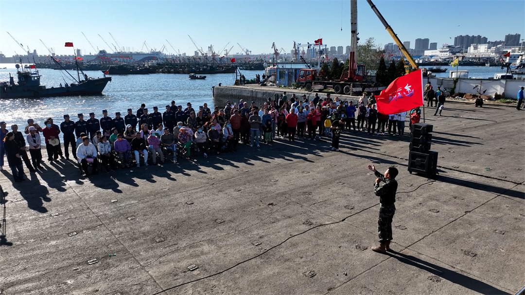 在大連遼漁碼頭演出時(shí),當(dāng)天海風(fēng)凜冽,氣溫驟降,但絲毫沒有減弱漁民朋友的熱情與期待。由于觀眾較多,座位遠(yuǎn)遠(yuǎn)不夠,許多漁民朋友索性站著,甚至攀上漁船、車頂。這時(shí),隊(duì)員陸敏志腰傷突發(fā)鉆心地疼。大連海警局宣傳干事建議他休息,陸智卻說,如果今天不能展示最好的表演狀態(tài),那就對不起臺下駐地執(zhí)法員和漁民朋友的熱情與期待。就這樣,他和隊(duì)員們與觀眾進(jìn)行了一場溫暖的雙向奔赴。