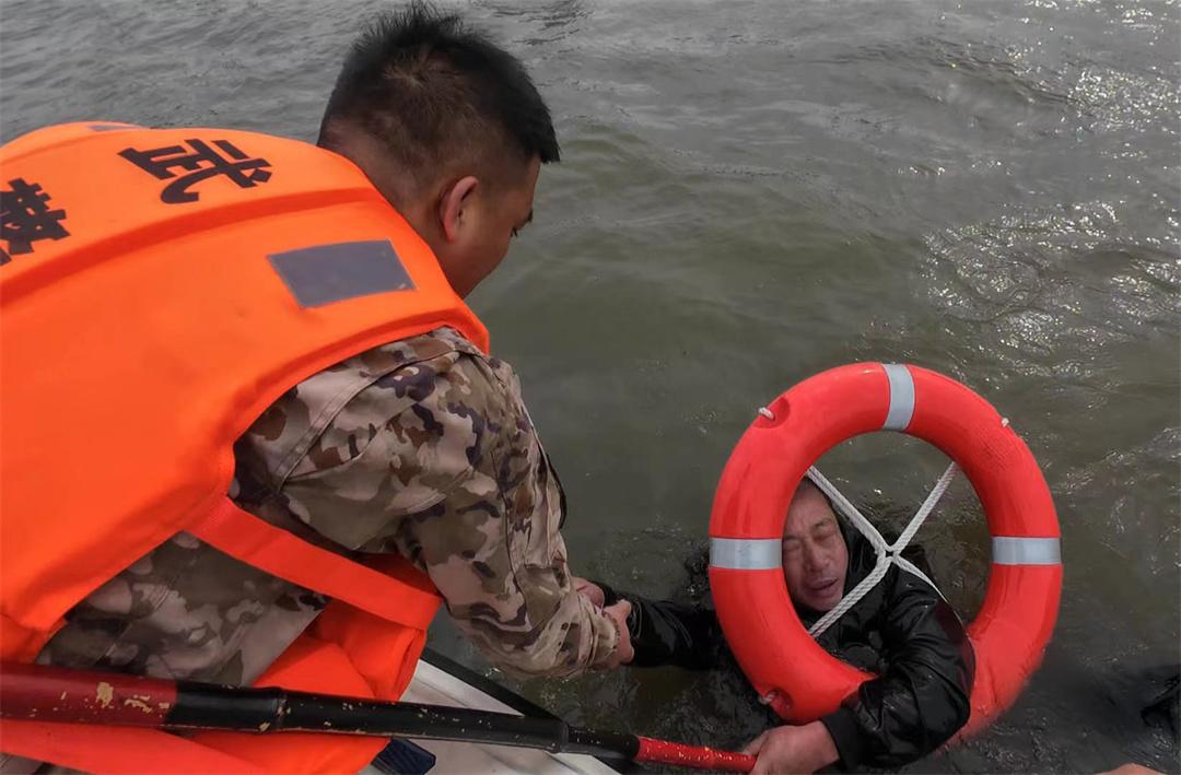 11時(shí)許,武警哈爾濱支隊(duì)船艇中隊(duì)龍武碼頭值守人員槍帆兵楊超突然聽到微弱的呼救聲,緊接著,他發(fā)現(xiàn)距江畔南岸70米處,有一名男子頭部在水中若隱若現(xiàn)。