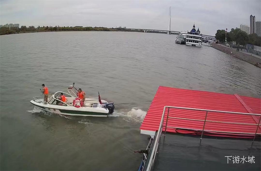 隨后,一艘掛機(jī)艇駛離龍武碼頭,楊超、李航、張洋攜帶救生圈、救生衣等器材全速向事發(fā)地點(diǎn)駛?cè)ァ?/p>
