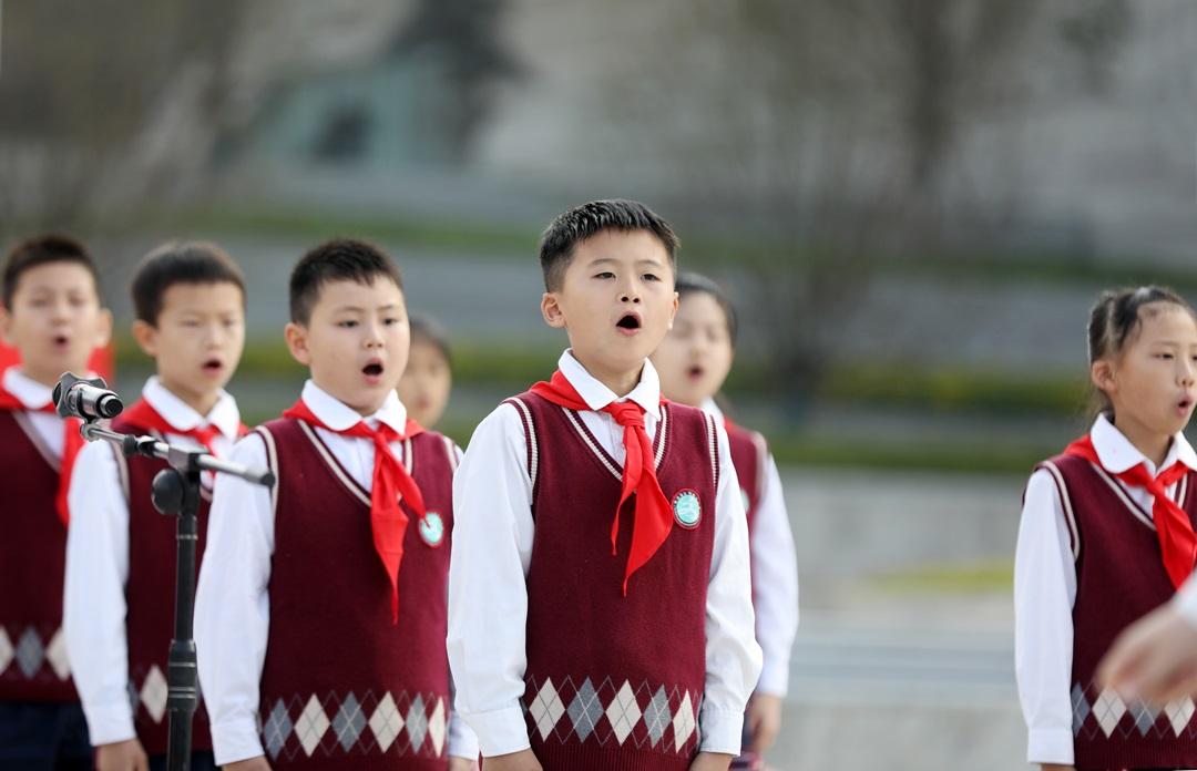 儀式上,少先隊員們集體朗誦《兩彈一星,我們把你追尋》,激勵廣大少先隊員以先輩為榜樣,傳承和弘揚“兩彈一星”精神。