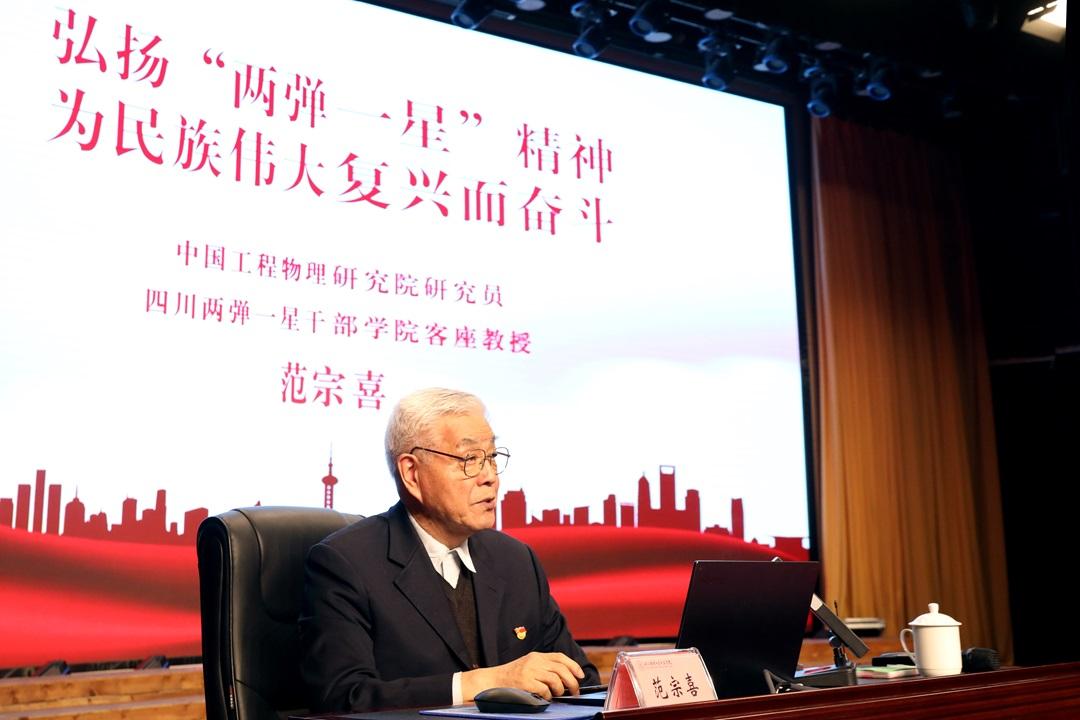 儀式結(jié)束后,少先隊員們參加了“兩彈一星”精神宣講報告會,“兩彈一星”老科學家范宗喜以“弘揚‘兩彈一星’精神、為民族偉大復興而奮斗”為主題進行宣講。