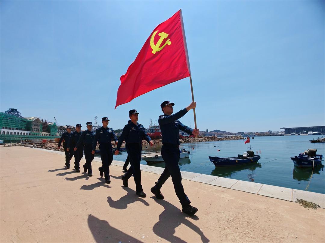 圖為山東煙臺海警局長島工作站組織執(zhí)法員重溫入黨誓詞。盧煜萱 攝