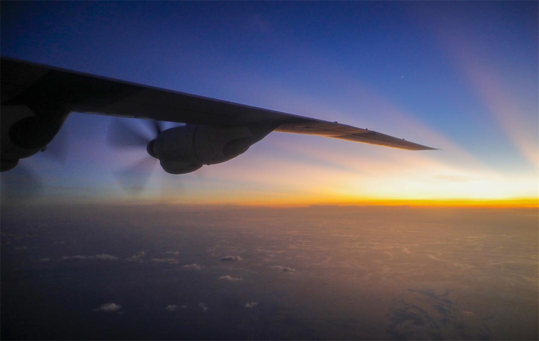 圖為戰(zhàn)機在暮色中出航。