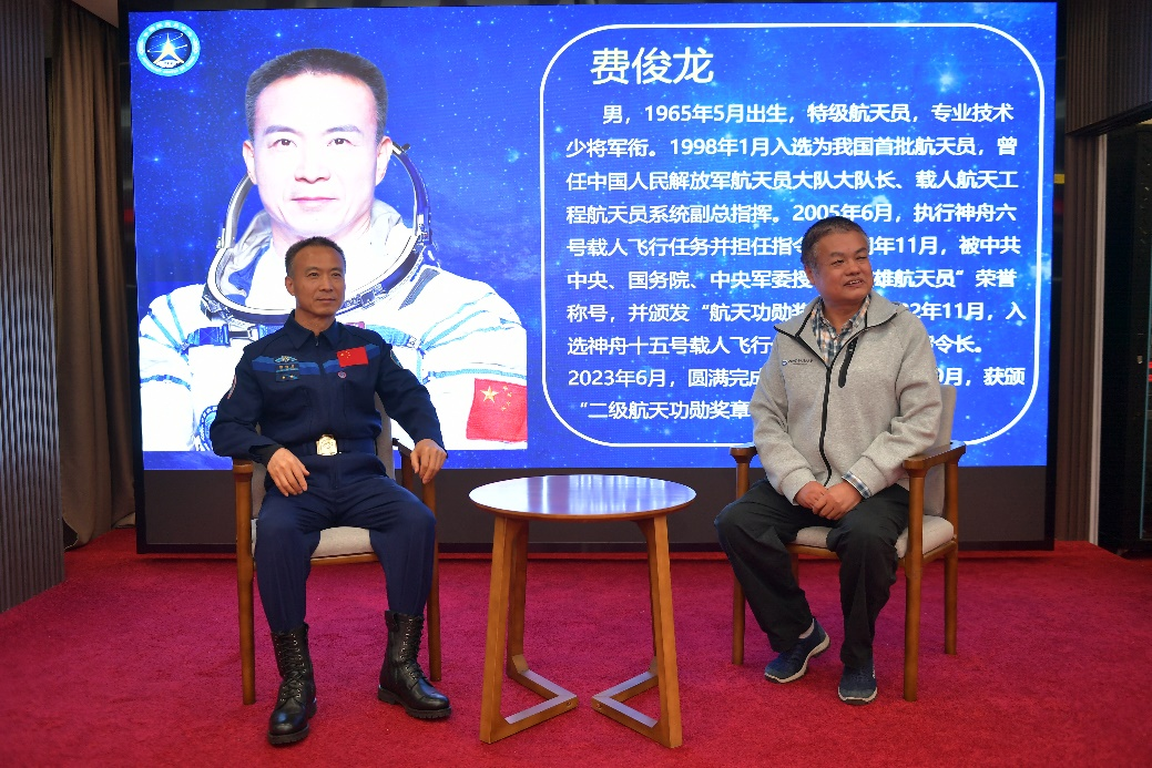 隨后,費(fèi)俊龍、劉慶會與現(xiàn)場少先隊(duì)員們互動交流。面對“如何才能成為航天員”“航天員日常都進(jìn)行什么訓(xùn)練”等提問,費(fèi)俊龍耐心生動地解答。