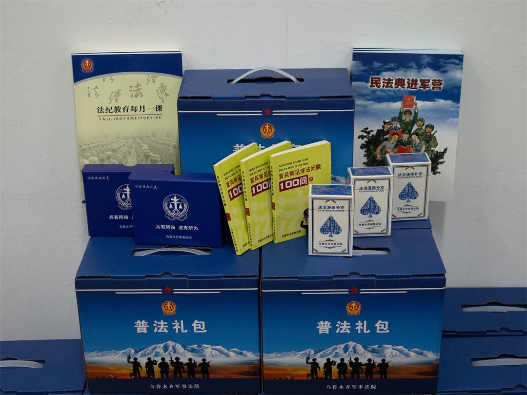 圖為烏魯木齊軍事法院為部隊官兵精心設(shè)計的普法大禮包。鐘子夜 攝