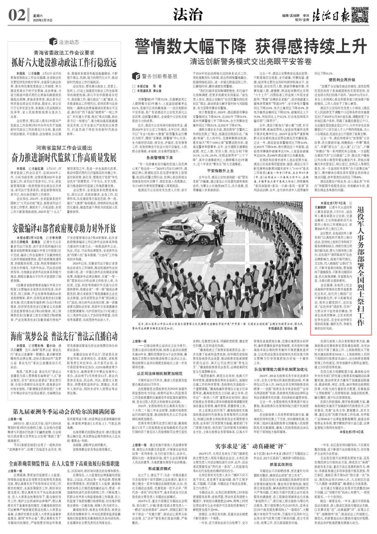 記者2月14日從退役軍人事務(wù)部獲悉,2月13日,退役軍人事務(wù)部聯(lián)合公安部、交通運(yùn)輸部、文化和旅游部召開全國(guó)烈士祭掃工作視頻會(huì)議,部署2025年烈士祭掃工作。
