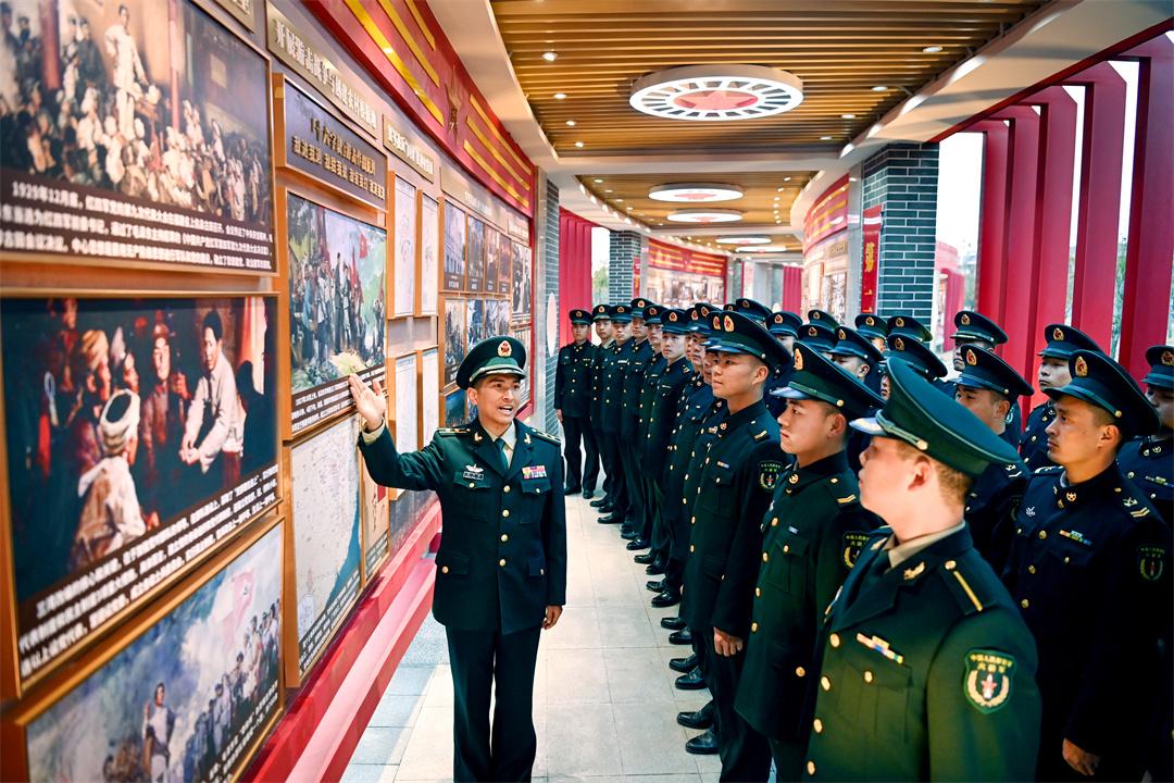 圖為張平坤(左)組織官兵重溫革命先輩事跡,砥礪奮斗豪情。劉明松 攝