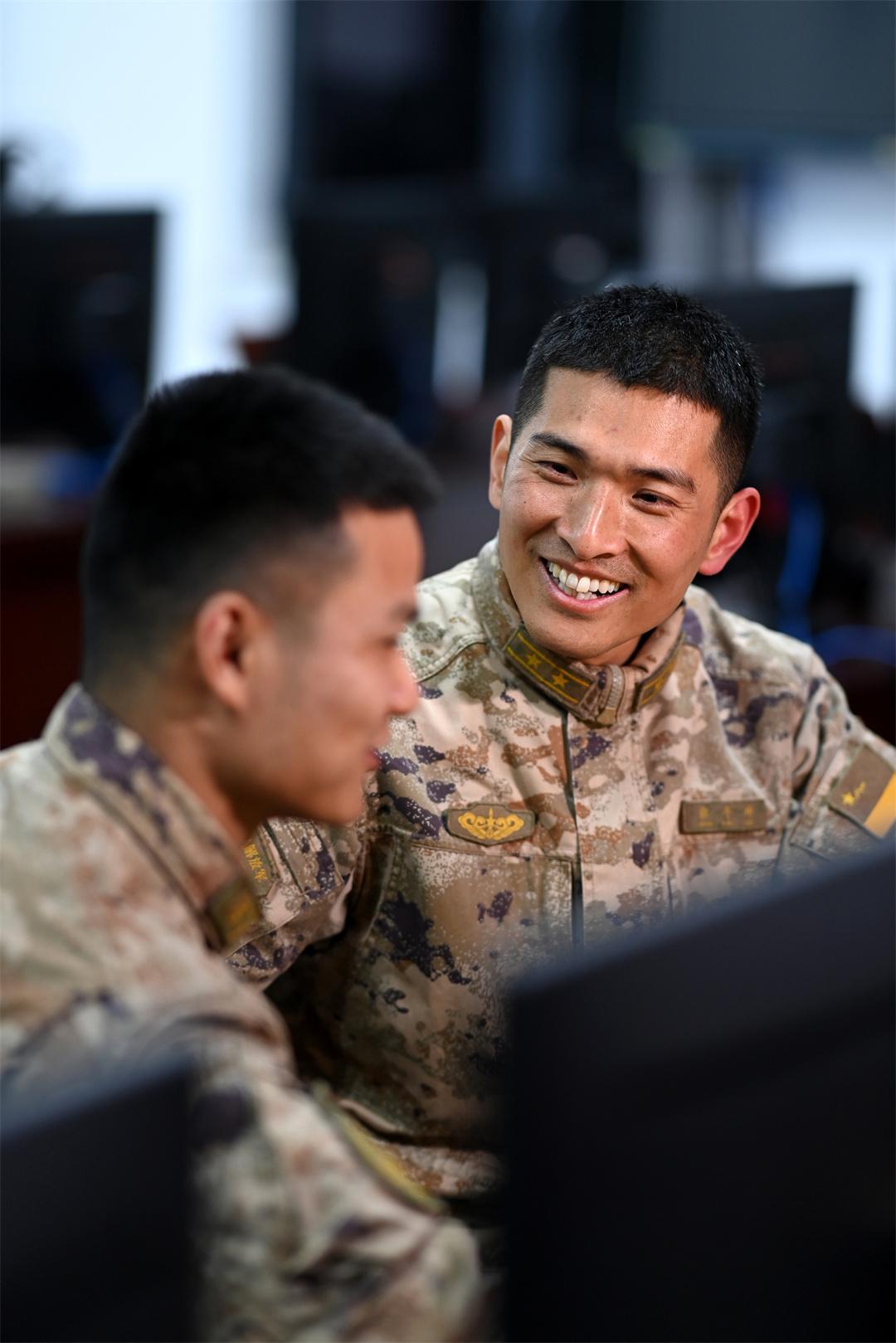 00后戰(zhàn)士陸強(qiáng)家境不錯(cuò),入伍后總想著在部隊(duì)干幾年就退役。張平坤經(jīng)常鼓勵(lì)他發(fā)揮特長(zhǎng),給大家講授理論熱點(diǎn)、分享學(xué)習(xí)心得,還鼓勵(lì)他參加上級(jí)組織的理論知識(shí)競(jìng)賽,并取得第一名。陸強(qiáng)慢慢發(fā)生改變,并堅(jiān)定強(qiáng)軍報(bào)國(guó)理想,主動(dòng)申請(qǐng)選改軍士。