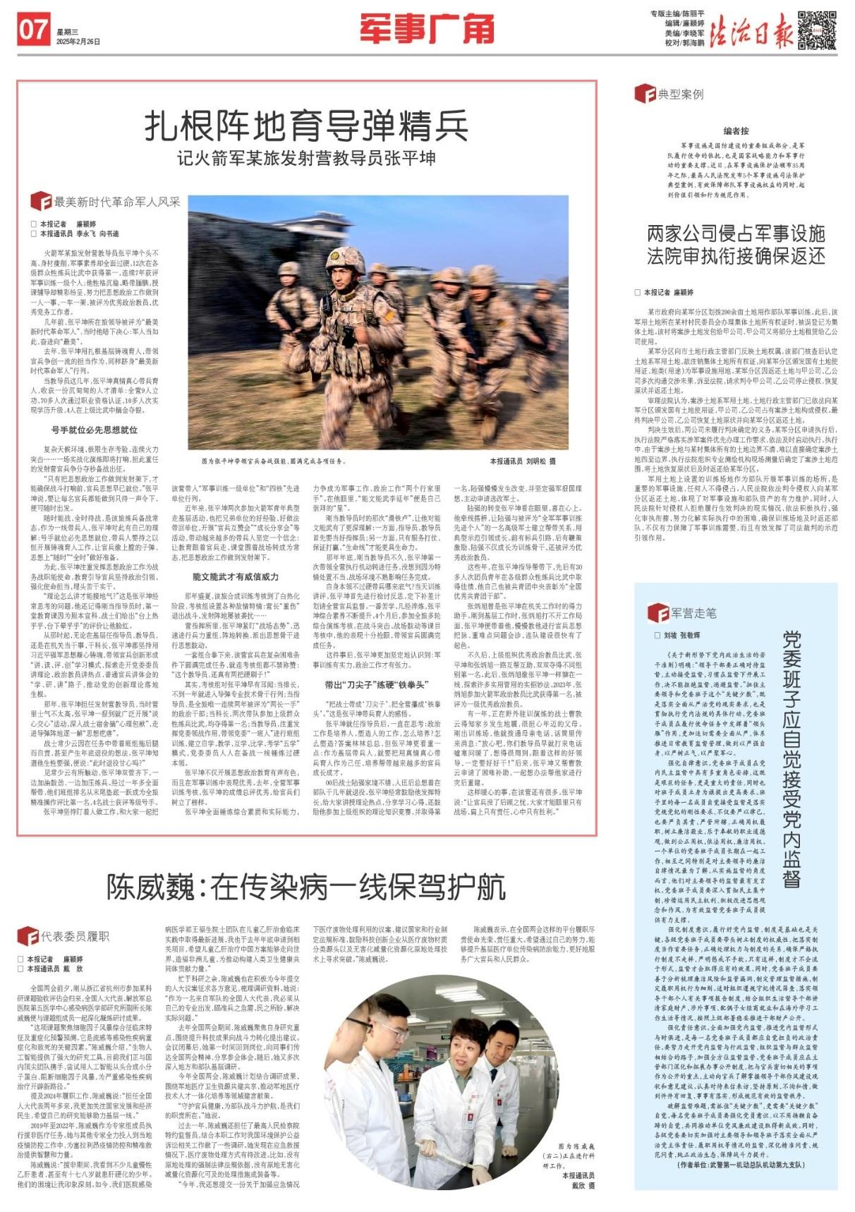 陸強(qiáng)的轉(zhuǎn)變張平坤看在眼里、喜在心上。他牽線搭橋,讓陸強(qiáng)與被評(píng)為“全軍軍事訓(xùn)練先進(jìn)個(gè)人”的一名高級(jí)軍士建立幫帶關(guān)系,用典型示范引領(lǐng)成長(zhǎng)。前有標(biāo)兵引路,后有鞭策激勵(lì),陸強(qiáng)不僅成長(zhǎng)為訓(xùn)練骨干,還被評(píng)為優(yōu)秀政治教員。