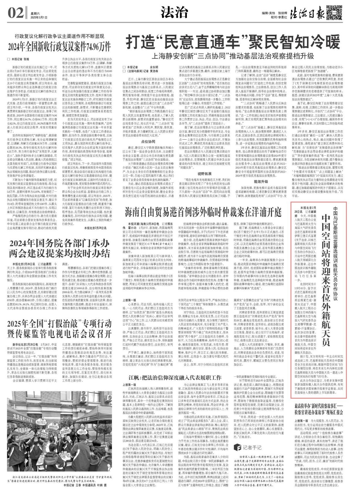 2月28日,中國(guó)載人航天工程辦公室與巴基斯坦太空與高層大氣研究委員會(huì)在巴基斯坦首都伊斯蘭堡正式簽署《關(guān)于選拔、訓(xùn)練巴基斯坦航天員并參與中國(guó)空間站飛行任務(wù)的合作協(xié)議》,開啟中巴兩國(guó)在載人航天領(lǐng)域深化合作新篇章,邁出中國(guó)選拔訓(xùn)練外籍航天員參與中國(guó)空間站飛行任務(wù)第一步。