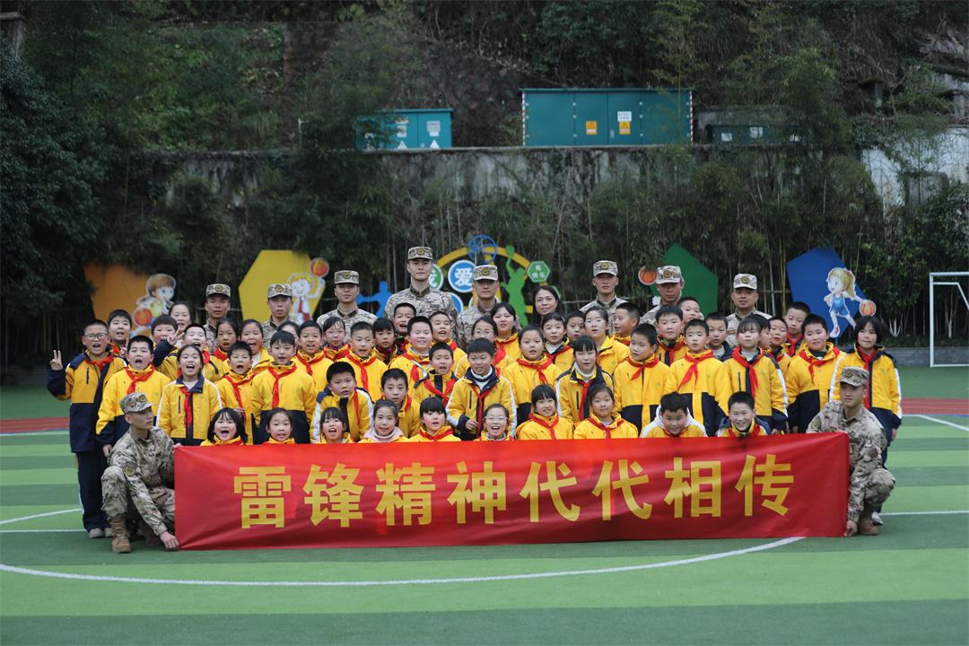 圖為武警官兵在駐地小學(xué)開展“雷鋒精神代代傳”主題活動。