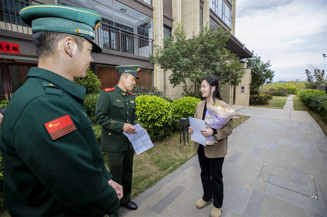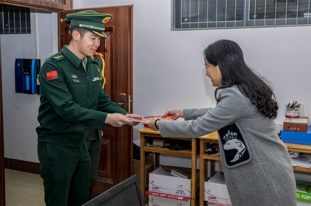 圖為官兵向軍屬送去節(jié)日問(wèn)候。